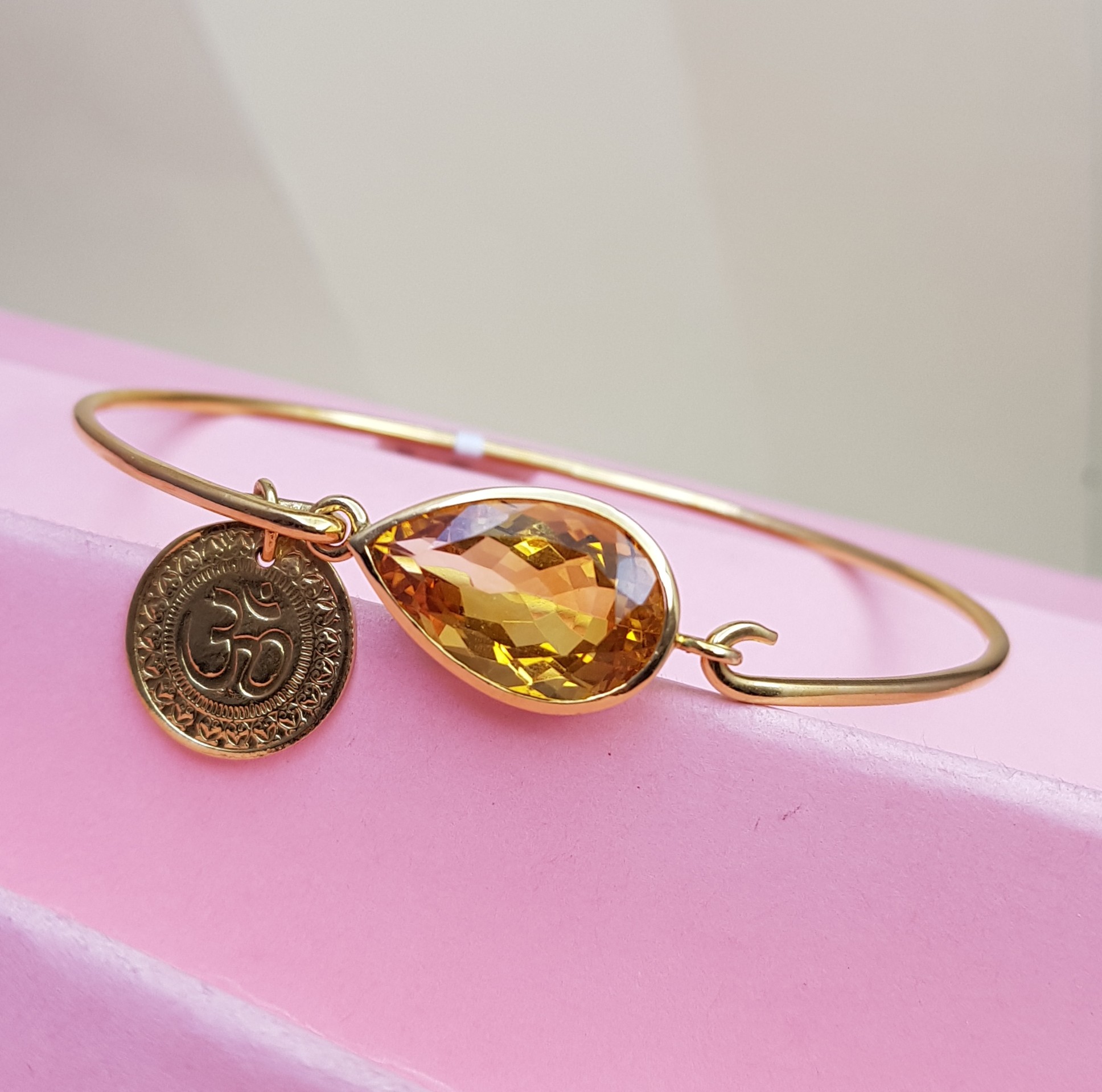 Calling all bracelet lovers! Giri collections presents this sleek gold Wire bracelet featuring a vibrant yellow Citrine complemented with a Gold Ginni chime. This versatile bracelet in 18K Gold goes well with both western and traditional ensembles.