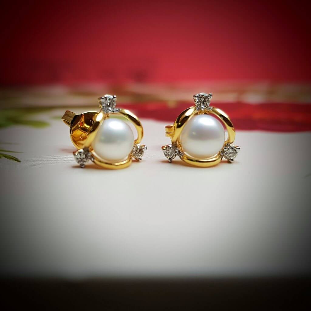 Pearl and Diamond Ear Studs in 18K Gold, Giri Collections